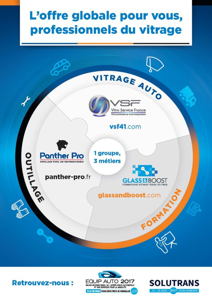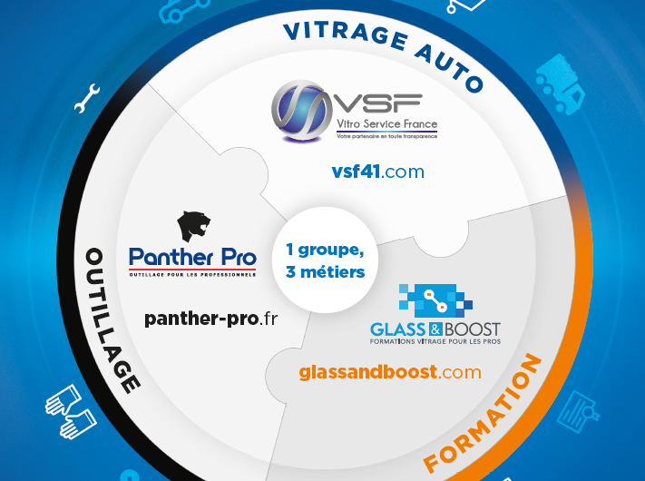 Toujours dans le soucis de proposer à nos clients des produits et services de qualité, nous avons intégré deux activités liées au vitrage : la fourniture d’outillage, grâce à la marque Panther Pro, ainsi que la formation vitrage dédiée aux professionnels grâce à notre école de formation Glass & Boost.