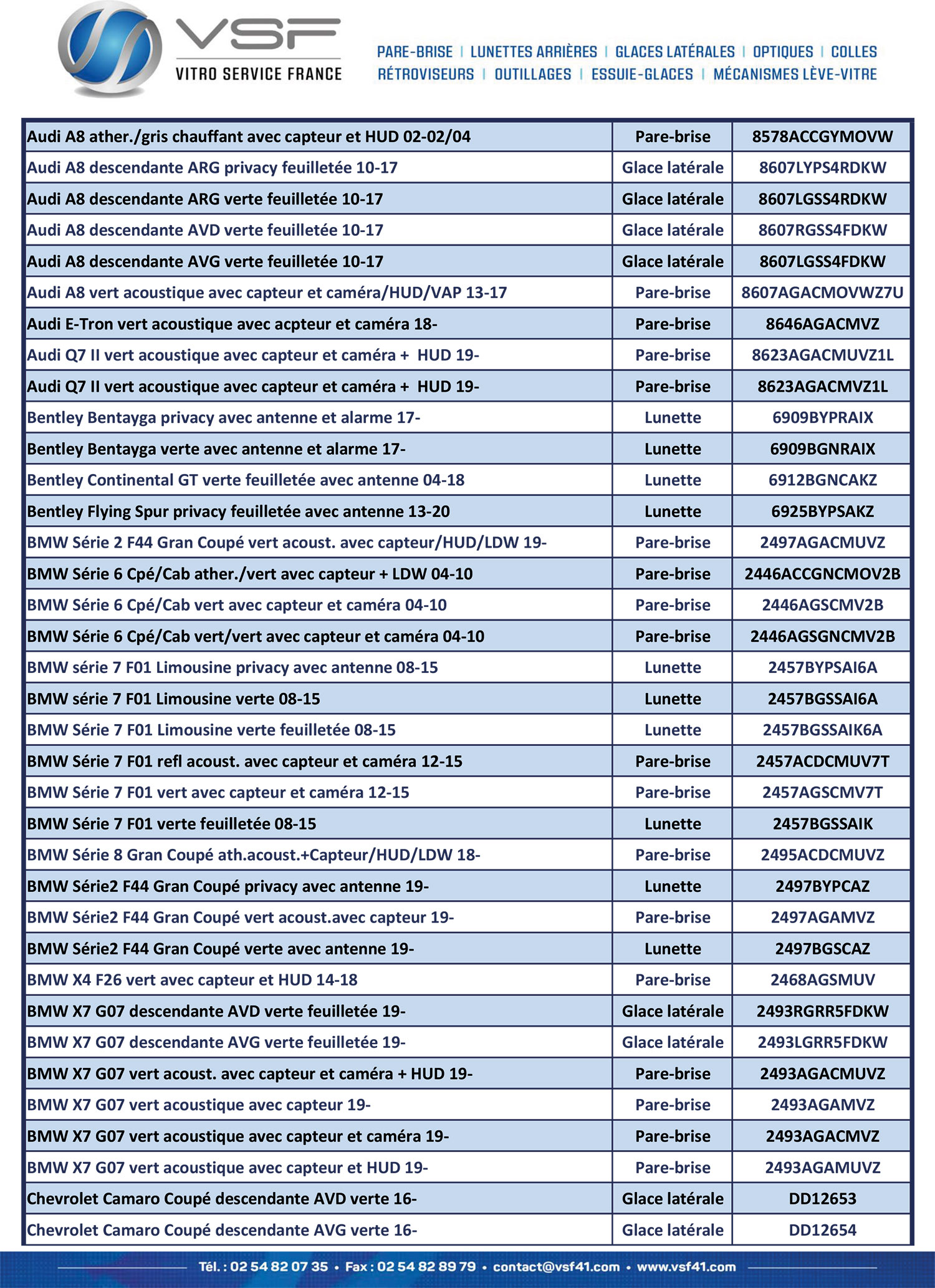 Audi A8, Bentley Bentayga, BMW Série 7, Chrysler ES, Dodge RAM, Fiat Ducato 3, Ford Transit, Hyundai H350, Iveco Eurocargo, Jaguar XJ, Kia Sorento, Land Rover Discovery Sport, Lexus ES, Mazda 323 BG, Mercedes GLA H247, Mitsubishi Pajero II, Nissan 370Z, Opel Combo C, Porsche 911/996, Renault Captur, Smart ForTwo, Subaru Légacy, Toyota Verso-S, Volvo XC 60…