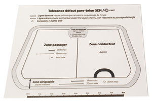 Cette carte est à apposer directement sur le défaut de votre pare-brise, et vous saurez si ce défaut constaté est acceptable ou non.