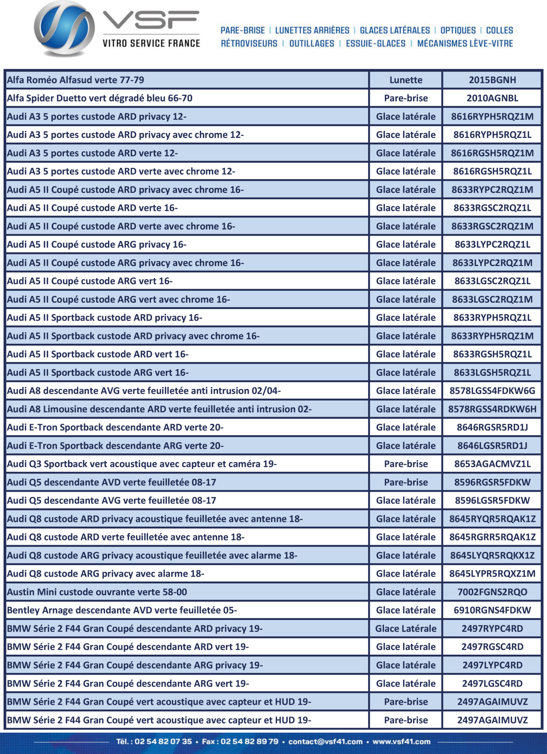 Retrouvez toutes nos offres « vitrage automobile » sur le site VSF.